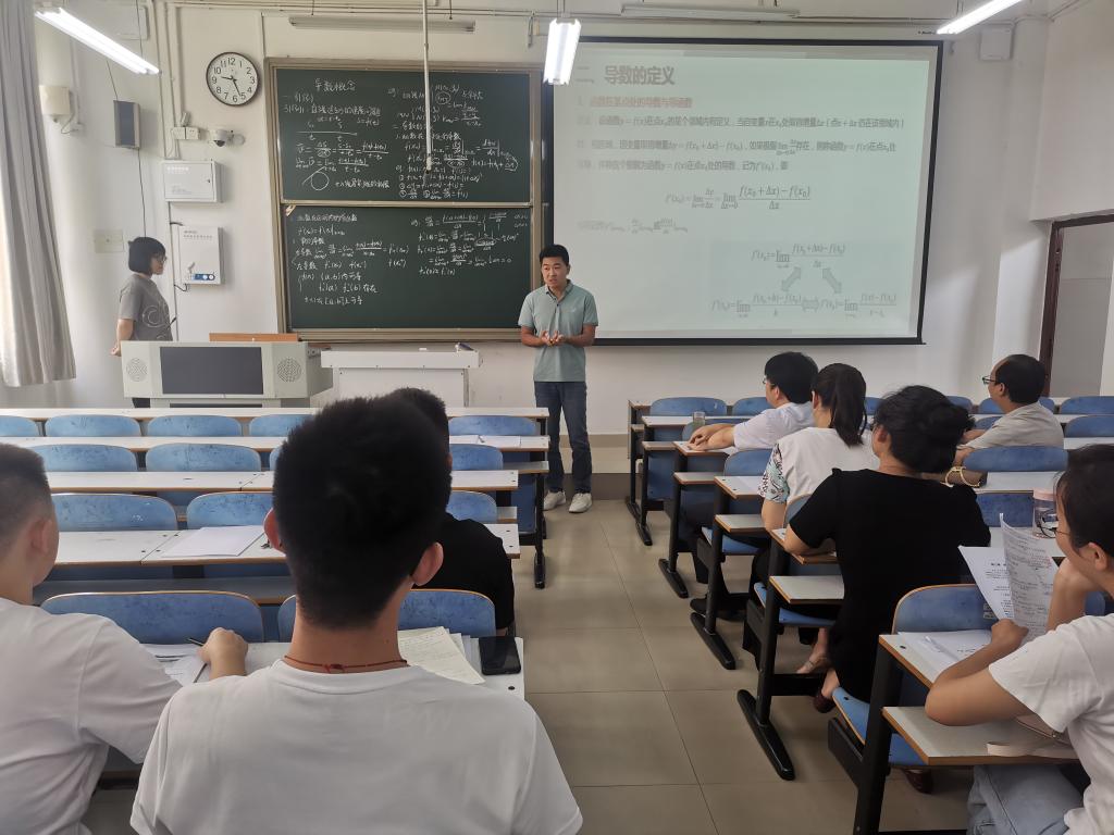 8月27日,先后开展了两个阶段的培训活动,参加人员为近三年新入职教师。第一阶段,由公司邀请的在教学及教学指导方面均具有丰富经验的、上一届督导组组长秦金华老师作题为《数学分析课程中的反例——处处连续处处不可导函数》的教学观摩示范课。秦金华老师从“勤”、“学”、“善”、“悟”的教学心得入题,向大家展示了一节课的完整教学过程,尤其在内容设计、课堂节奏、语言表达、语速快慢、板书内容、师生互动、数学史及数学知识关联等方面,向青年教师诠释了数学课讲授过程中的精准把控,为青年教师指明了今后教学技能的提高方向。