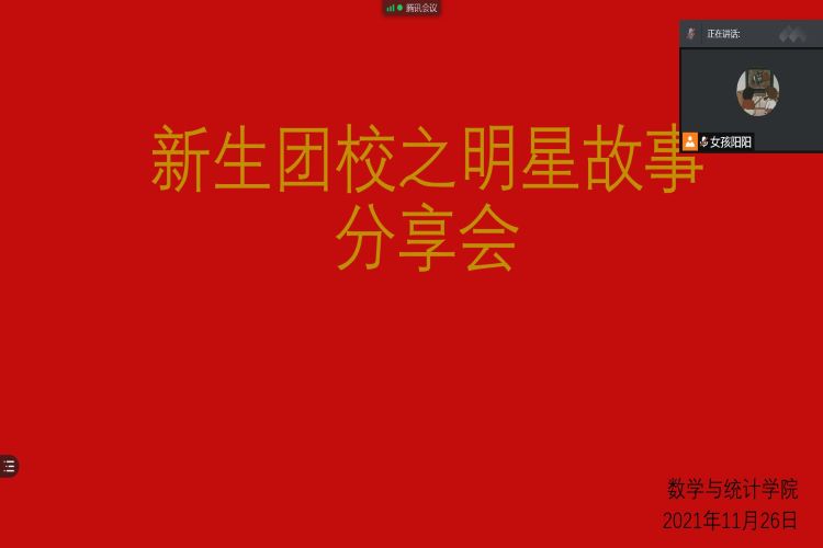 为深入学习贯彻习近平新时代中国特色社会主义思想,充分发挥共青团思想政治引领和价值引领的作用,深入挖掘员工先进典型,充分发挥榜样引领与示范作用。11月26日,太阳成集团tyc234cc主页组织21级员工干部、部分员工会成员以及往届明星学长学姐参加此次线上明星故事分享会。会议由组织部部长王金丰主持。