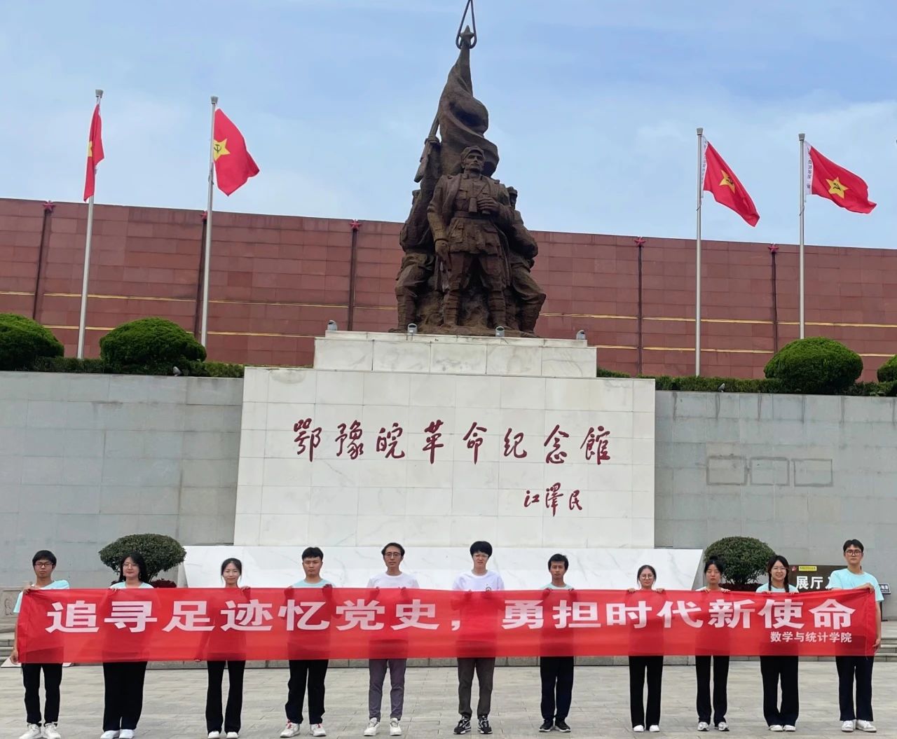 追寻足迹忆党史,勇担时代新使命。7月1日,为庆祝中国共产党成立102周年,太阳成集团tyc234cc主页“寻迹中原”实践队队员们来到了鄂豫皖革命纪念馆参观学习,弘扬建党精神,赓续红色血脉,感受英雄的忠贞信念。