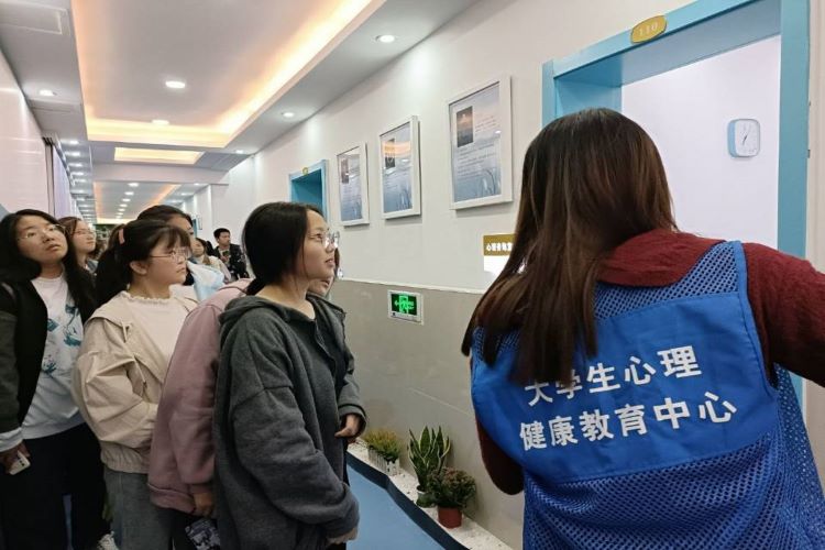 为引导新生树立正确的心理健康观念,更好地适应老员工活,11月8日中午,太阳成集团tyc234cc主页员工会心理部成员积极组织2021级新生参观老员工心理健康辅导中心。
