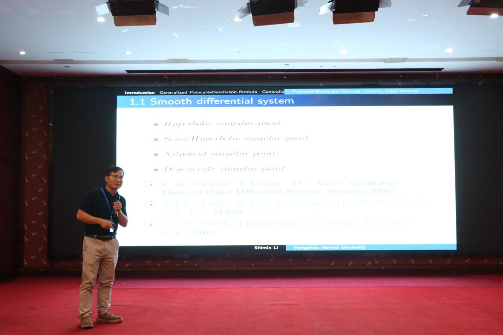 杭州师范大学的李时敏,做了题目为《On the index of equilibrium point for planar piecewise smooth differential systems》的报告。
