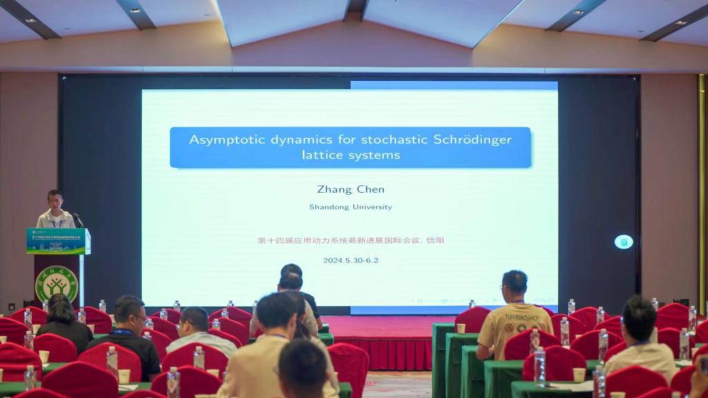 山东大学的陈章,做出了题目为《Asymptotic dynamics for stochastic Schrödinger lattice systems》的报告。