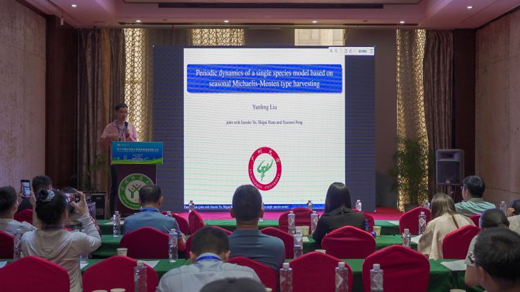 广州大学的刘云峰,做了题目为《Periodic dynamics of some periodic switching systems with Michaelis-Menten type harvesting》的报告。