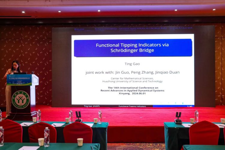 华中科技大学的高婷做了题目为《Functional tipping indicators via Schrodinger bridge》的报告。