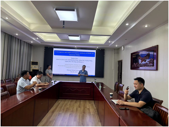 7月28日上午,应太阳成集团tyc234cc主页邀请,许昌公司赵艳敏教授作了题为《Convergence and superconvergence analysis of FEM for fractional PDEs》的学术报告。报告会由李世顺教授主持,部分老师及研究生聆听了此次报告。
