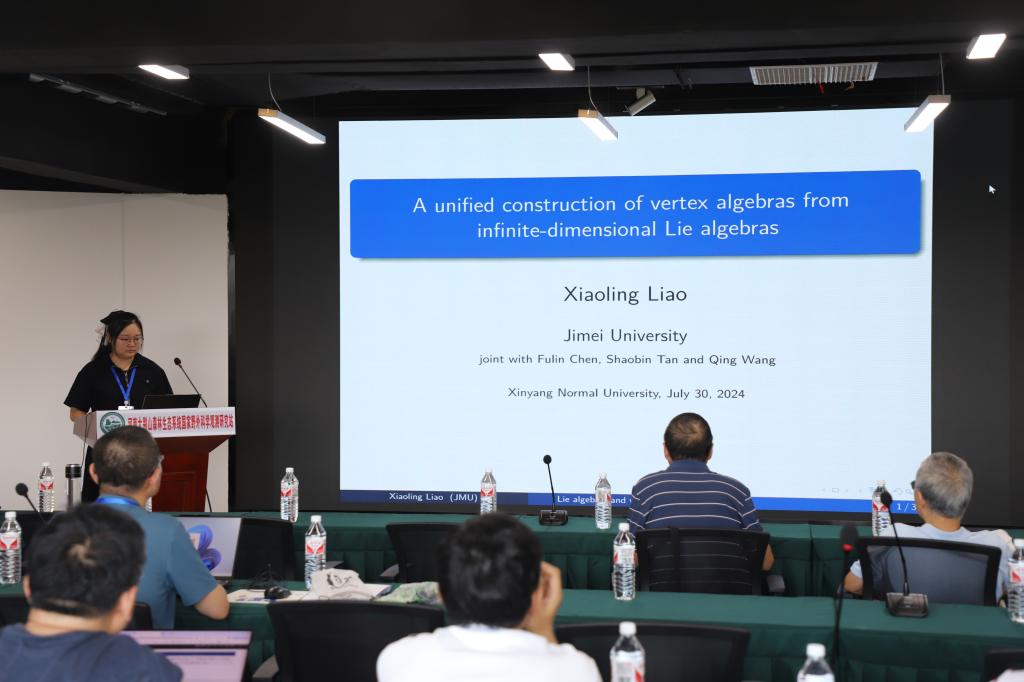 集美大学的廖小玲做了题目为《A unified construction of vertex algebras from infinite-dimensional Lie algebras》的报告。