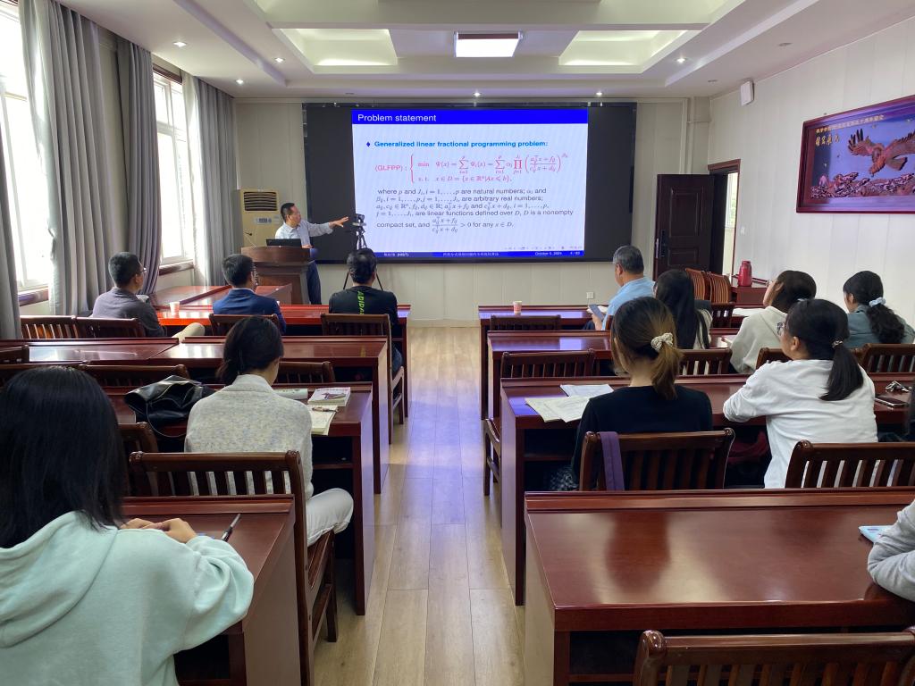 10月5日上午,应太阳成集团tyc234cc主页邀请,河南科技公司焦红伟教授作了题为《Global optimization methods for the minimax linear fractional programming problems》的学术报告。报告会由韩英波教授主持,部分老师及研究生聆听了此次报告