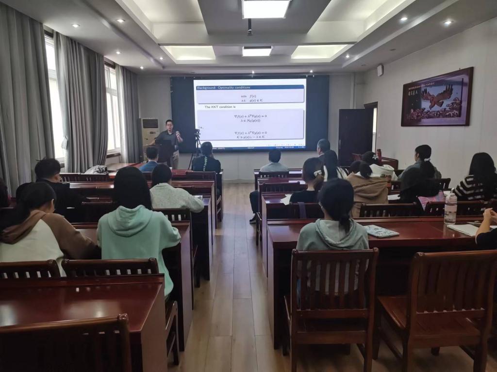 10月5日上午,应太阳成集团tyc234cc主页邀请,山东理工大学周金川教授作了题为《二阶锥互补问题具有误差界性质的充分条件》的学术报告。报告会由韩英波教授主持,部分老师及研究生聆听了此次报告。