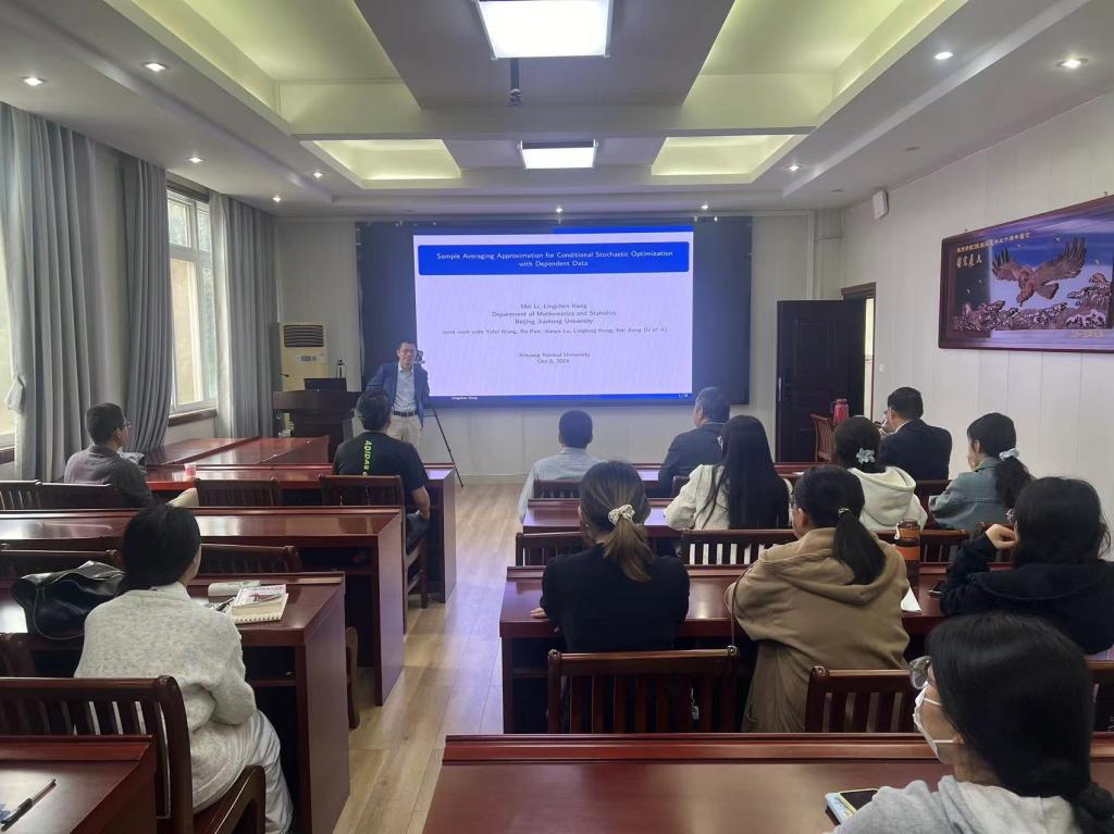 10月5日上午,应太阳成集团tyc234cc主页邀请,北京交通大学孔令臣教授作了题为《Sample Average Approximation for Conditional Stochastic Optimization with Dependent Data》的学术报告。报告会由蔡礼明教授主持,部分老师及研究生聆听了此次报告。
