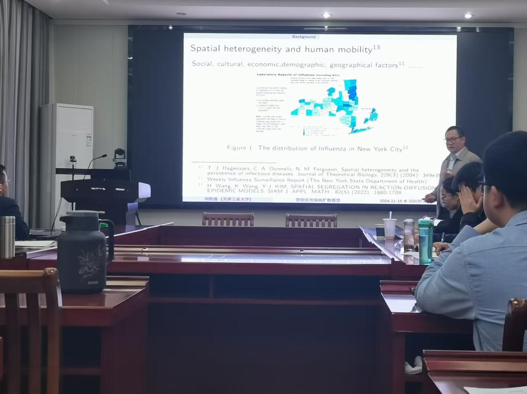 刘教授的报告深入浅出,报告结束后与师生展开了激烈讨论,对与会师生提出的问题给予了全面的解答,提供了关于运用反应项不连续的反应扩散方程模型揭示传染病传播规律的研究思路。(李帅供稿,韩英波审核)