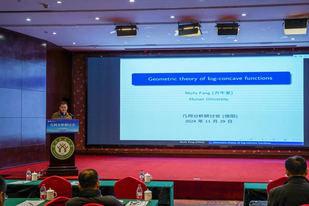 第4场报告是由湖南大学的方牛发教授作了题目为“Geometric theory of log-concave functions”的学术报告,此场报告由重庆理工大学的林乾教授主持。