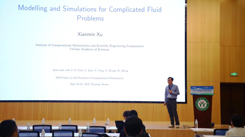 6中国科公司数学与系统科学研究院许现民研究员作了题目为《Modelling and Simulations for complicated fluid problems的学术报告。(李世顺供稿、严辉银审核、韩英波终审)