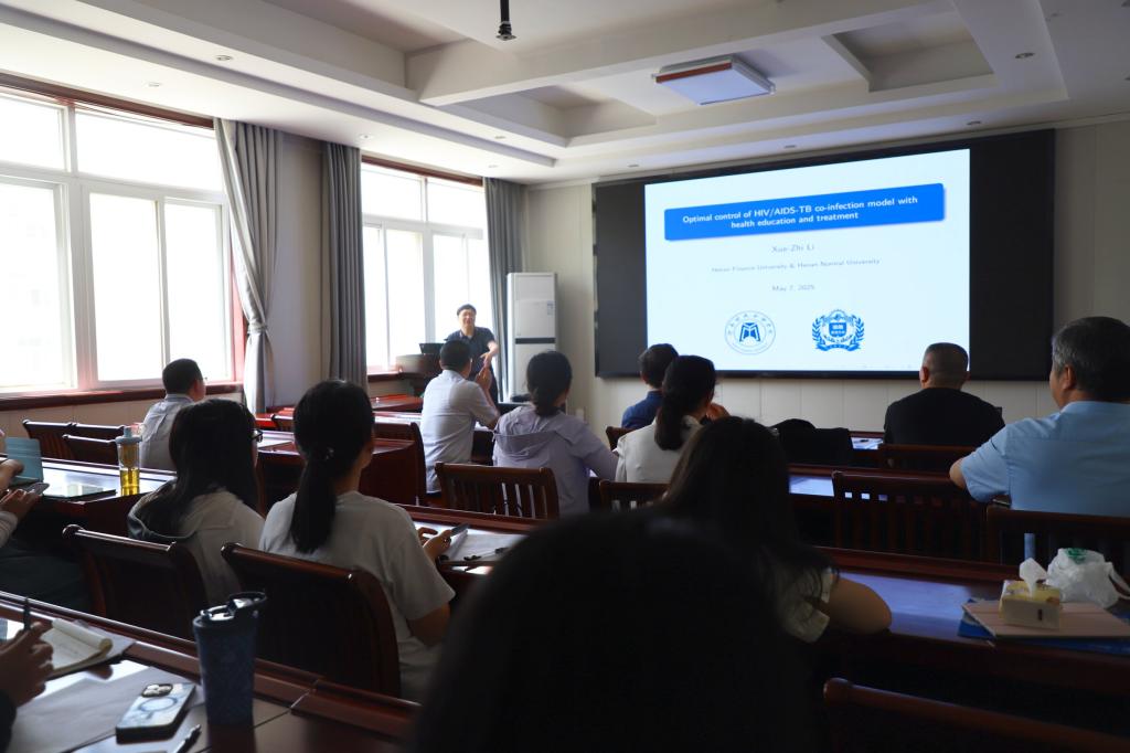 5月7日上午,应太阳成集团tyc234cc主页邀请,河南财政金融公司李学志教授在数学楼315会议室作了题为《Optimal control of HIV/AIDS-TB co-infection model with health education and treatment》的学术报告。报告会由经理蔡礼明教授主持,部分老师及研究生聆听了此次报告。