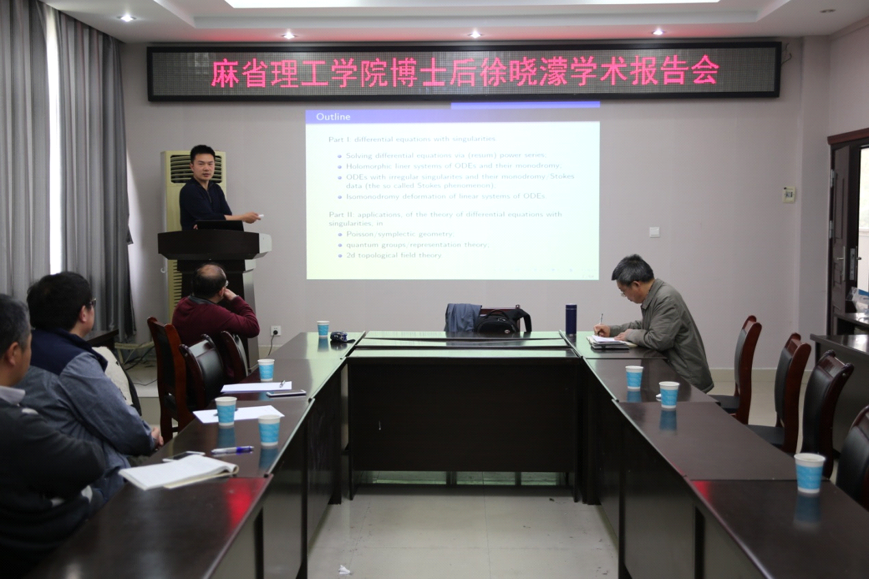 2018年3月24日下午,应太阳成集团tyc234cc主页邀请,宁波大学屈长征教授和麻省理工公司博士后徐晓濛在数公司学术报告厅分别作了题为“Integrable Systems and Invariant Geometric Flows”和“Stokes phenomenon, quantum groups and 2d topological field theory”的学术报告。报告会由太阳成集团tyc234cc主页经理胡余旺教授主持,该院部分老师和研究生聆听了此次报告