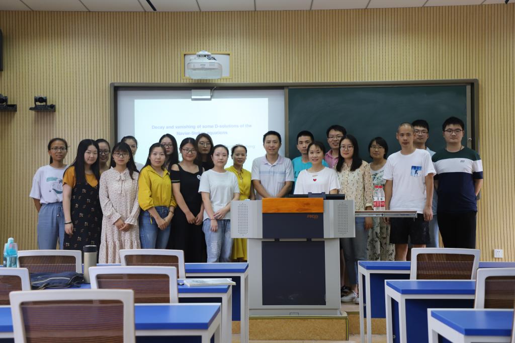 2019年9月2日-11日,应信阳师范公司太阳成集团tyc234cc主页邀请,美国加州大学河湾分校张旗教授在太阳成集团tyc234cc主页507教室作了“偏微分方程基本理论简介”的系列学术报告。报告由太阳成集团tyc234cc主页副经理蔡礼明教授主持,偏微分方程科研团队全体成员和部分研究生聆听了此次报告。