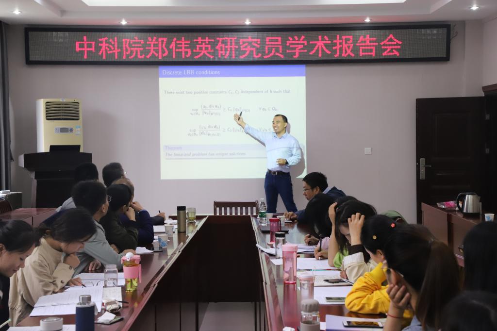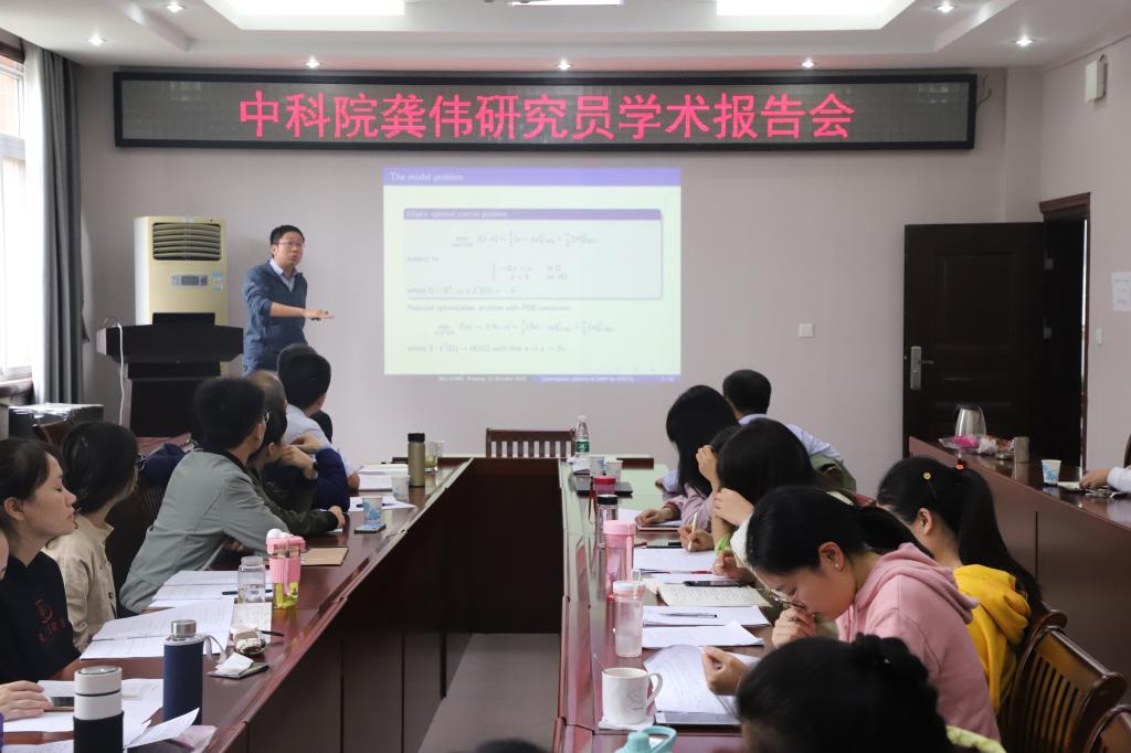 10月11日上午,应太阳成集团tyc234cc主页邀请,中国科公司数学与系统科学研究院郑伟英研究员和龚伟研究员,在公司学术报告厅分别作了题为“Conservative finite element method for incompressible MHD equations”和“Convergence analysis of the Schwarz alternating method for elliptic optimal control problems”的报告。报告会由太阳成集团tyc234cc主页副经理蔡礼明教授主持,公司部分教师和研究生聆听了这次报告会。