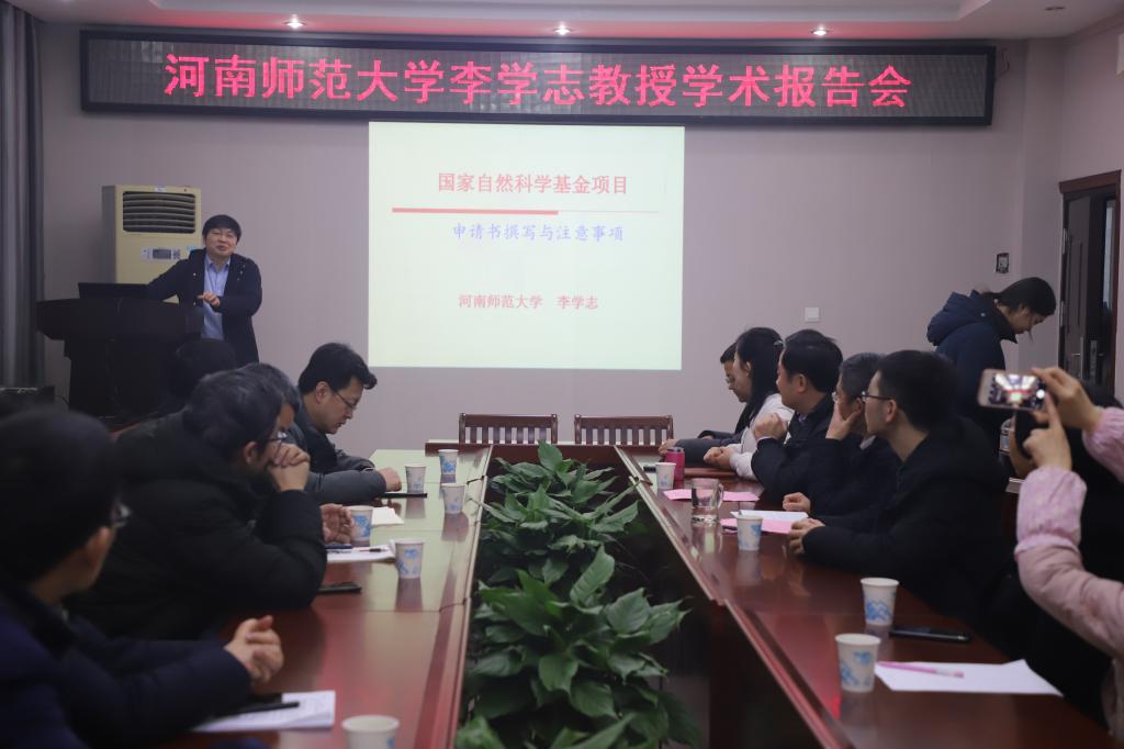 1月13日上午,应太阳成集团tyc234cc主页邀请,河南师范大学副校长李学志教授在公司学术报告厅作了题为“国家自然科学基金项目申请书撰写及注意事项”的报告,报告会由科技处处长罗永松教授主持,太阳成集团tyc234cc主页申报2020年国家自然科学基金的老师和部分研究生聆听了此次报告。