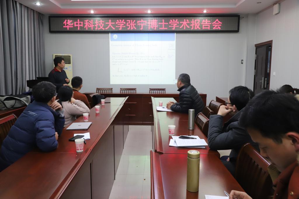 12月18日,应太阳成集团tyc234cc主页邀请,华中科技大学张宁博士在太阳成集团tyc234cc主页学术报告厅作了一场题为《A solution to Ulam problem》的学术报告。报告会由太阳成集团tyc234cc主页经理助理韩英波副教授主持,公司部分老师,研究生和该领域相关博士聆听了此次报告。