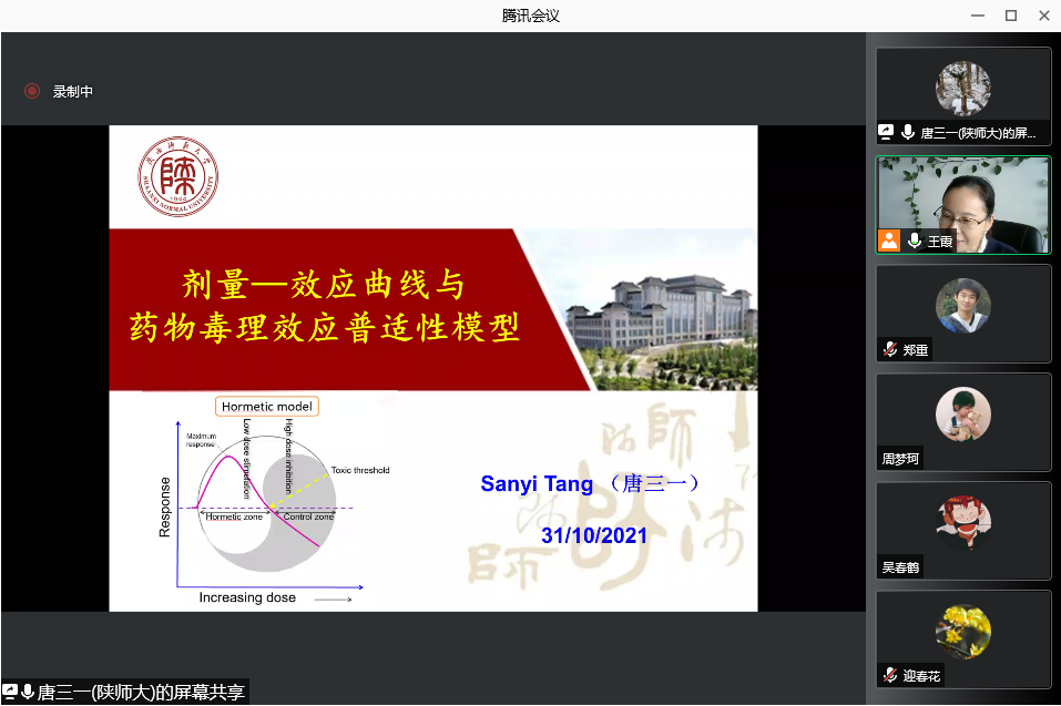 10月31日上午,应太阳成集团tyc234cc主页邀请,陕西师范大学唐三一教授通过腾讯会议平台为公司研究生及相关研究方向老师作了题为《剂量—效应曲线与药物毒理效应普适性模型》的学术报告。报告会由太阳成集团tyc234cc主页王霞教授主持。