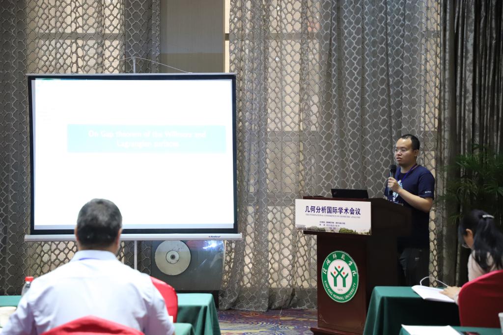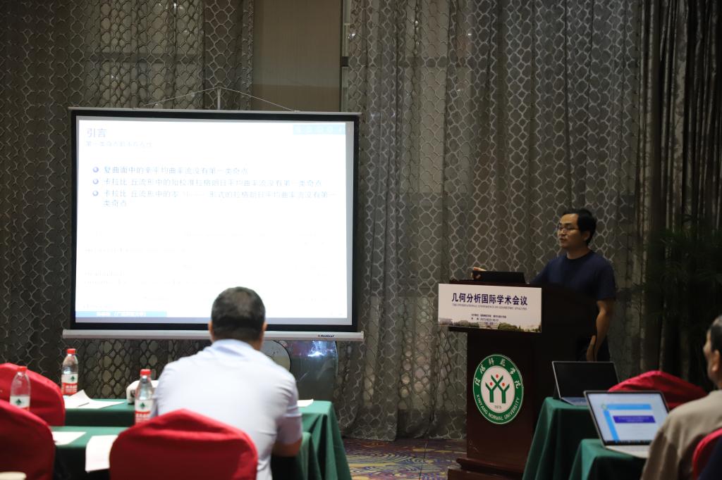 2场报告由四川大学熊昌伟教授报告,题目为《Sharp upper bounds for the capacity in the hyperbolic and Euclidean spaces》。在报告中,熊昌伟教授利用逆平均曲率流的工具得到欧式空间和双曲空间上光滑紧集的容积的各种最优上界估计。