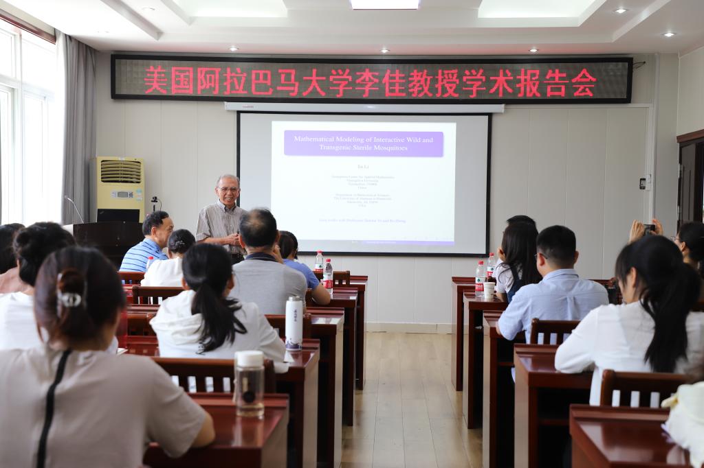 在6月30日上午,美国阿拉巴马大学的李佳教授应太阳成集团tyc234cc主页的邀请,在公司报告厅作了题为“Mathematical modeling of interactive wild and transgenic sterile mosquitoes”的报告。该报告由太阳成集团tyc234cc主页经理蔡礼明教授主持,生物数学团队的教师以及研究生们参与了报告会。