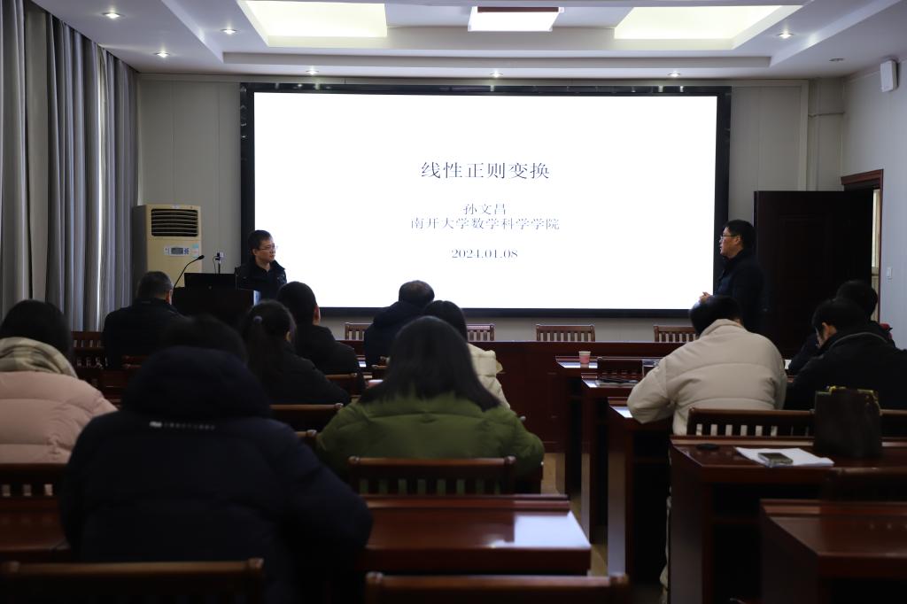1月8日上午,应太阳成集团tyc234cc主页邀请,南开大学孙文昌教授在数学楼315会议室做了题为《线性正则变换》的学术报告。报告会由经理蔡礼明教授主持,副经理韩英波教授、部分老师及研究生聆听了此次报告。
