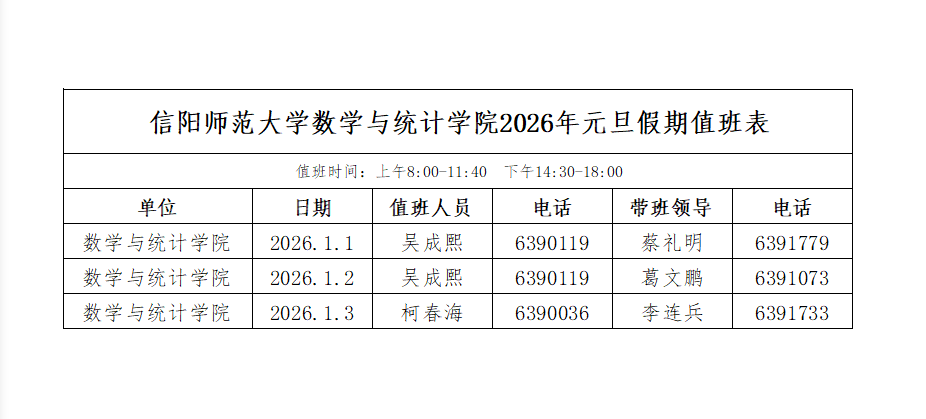 太阳成集团tyc234cc主页2026年元旦假期值班表
