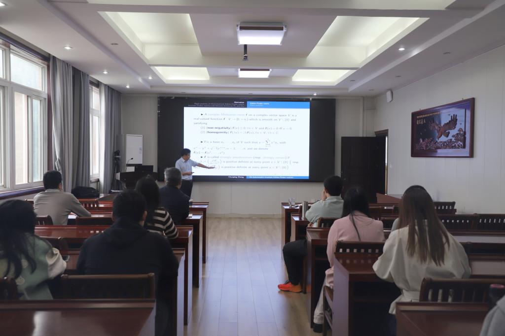 1016日上午,应太阳成集团tyc234cc主页邀请,厦门大学钟春平教授在公司315会议室作了题为“On holomorphic invariant Kähler-Finsler metrics”的报告。报告会由太阳成集团tyc234cc主页经理蔡礼明教授主持,部分教师和研究生参加了此次报告会。