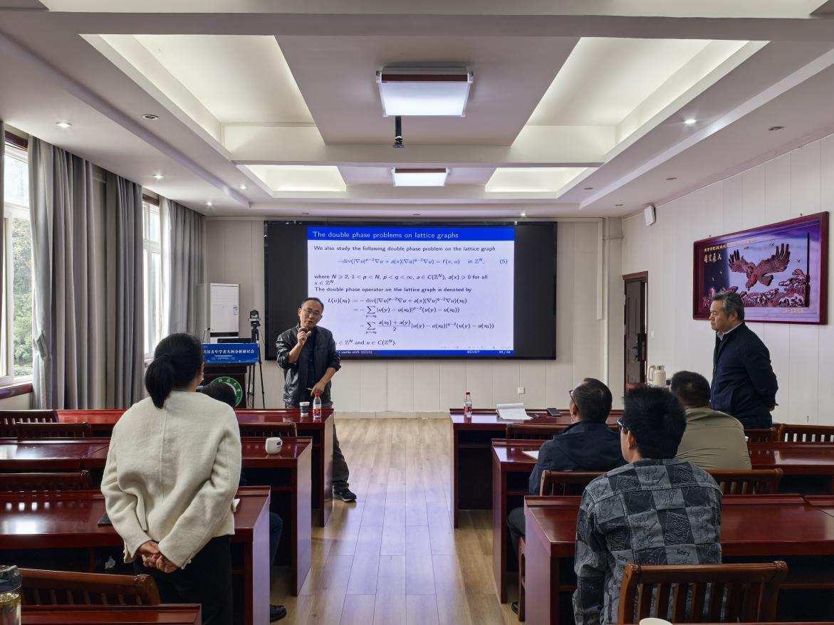 10月24日上午,华东理工大学姬超教授在数学楼315会议室为公司师生做了题为《Some results on nonlinear PDEs on lattice graphs》的学术报告。报告由数学与统计公司副经理韩英波教授主持,公司相关专业教师、研究生参加了报告会。