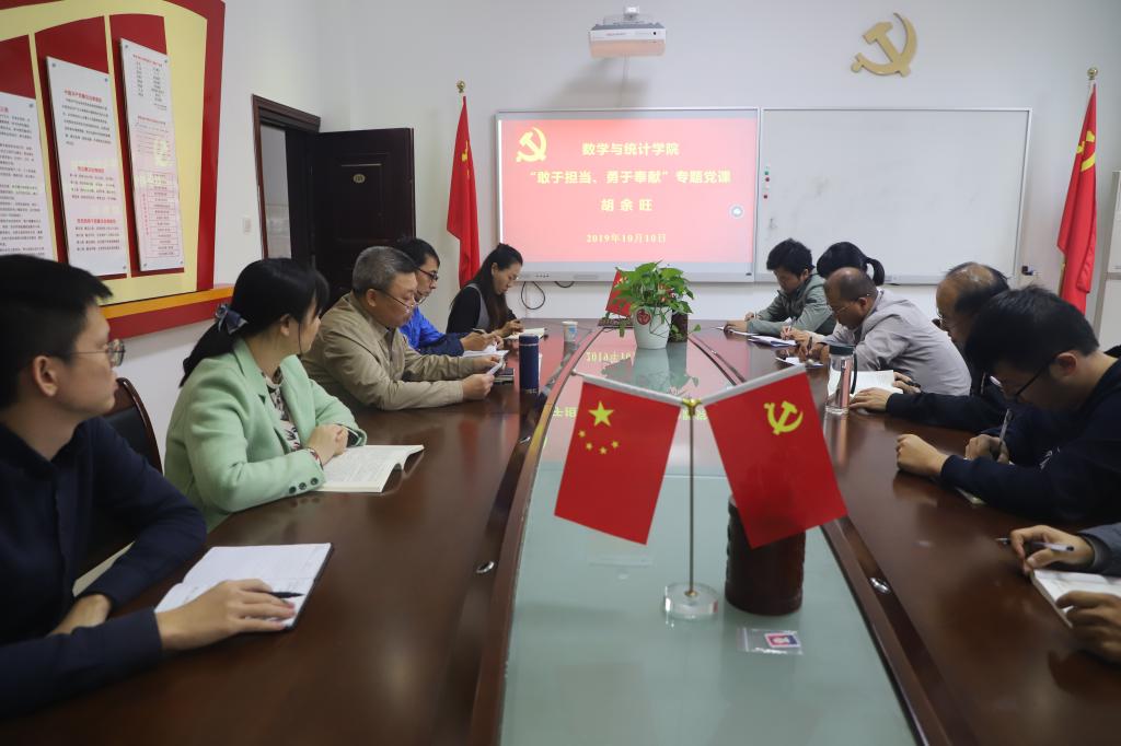 10月10日,根据公司“不忘初心、牢记使命”主题教育实施方案,经理胡余旺以“敢于担当,勇于奉献”为题,在数学楼109党员之家为公司教工第二党支部同志们作了一场精彩生动的党课辅导报告。