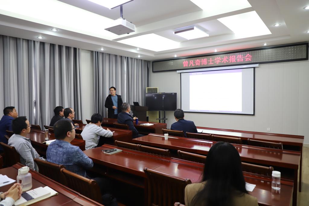 曾凡奇博士作为第八期论坛活动的主讲人,作了题为“Some almost-Schur type inequalities and applications on sub-static manifolds”的学术报告。曾博士首先简单介绍了almost-Schur 型不等式的一些背景,例如Schur 引理、almost Schur 引理和加权 almost Schur 引理;然后曾博士对almost Schur 引理和加权 almost Schur 引理做了改进和推广。此外,曾博士还分享了部分研究结果在高阶平均曲率和高阶数量曲率上的一些应用,并对未来研究工作做了展望。报告结束后,曾博士针对师生们提出的问题给出了详细的解答,并与师生就报告内容进行了热烈的讨论。