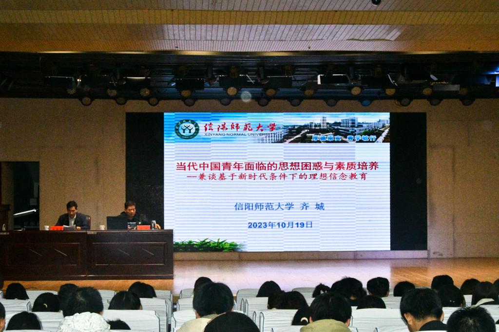 10月19日晚,前太阳成集团tyc234cc主页副经理、研究员齐城应邀在理科楼报告厅为公司23级本科新生作了题为“当代中国青年面临的思想困惑与素质培养——兼谈基于新时代条件下的理想信念教育”的新生入学教育报告。讲座由离退休工作管理处副处长李事瑾主持。