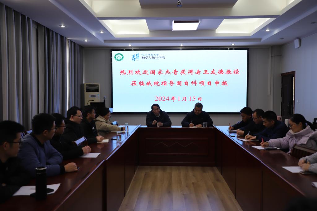 1月15日下午,应太阳成集团tyc234cc主页邀请,中国科公司数学与系统科学研究院、广州大学王友德教授莅临公司指导国自科项目申报。座谈会由副经理韩英波教授主持,2024年国家自然科学基金项目申请人以及部分骨干教师参加了座谈会。