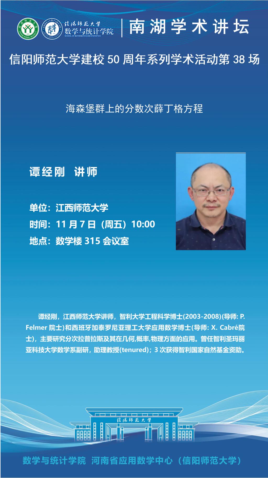 庆建校50周年之南湖讲坛:江西师范大学谭经刚讲师——海森堡群上的分数次薛丁格方程